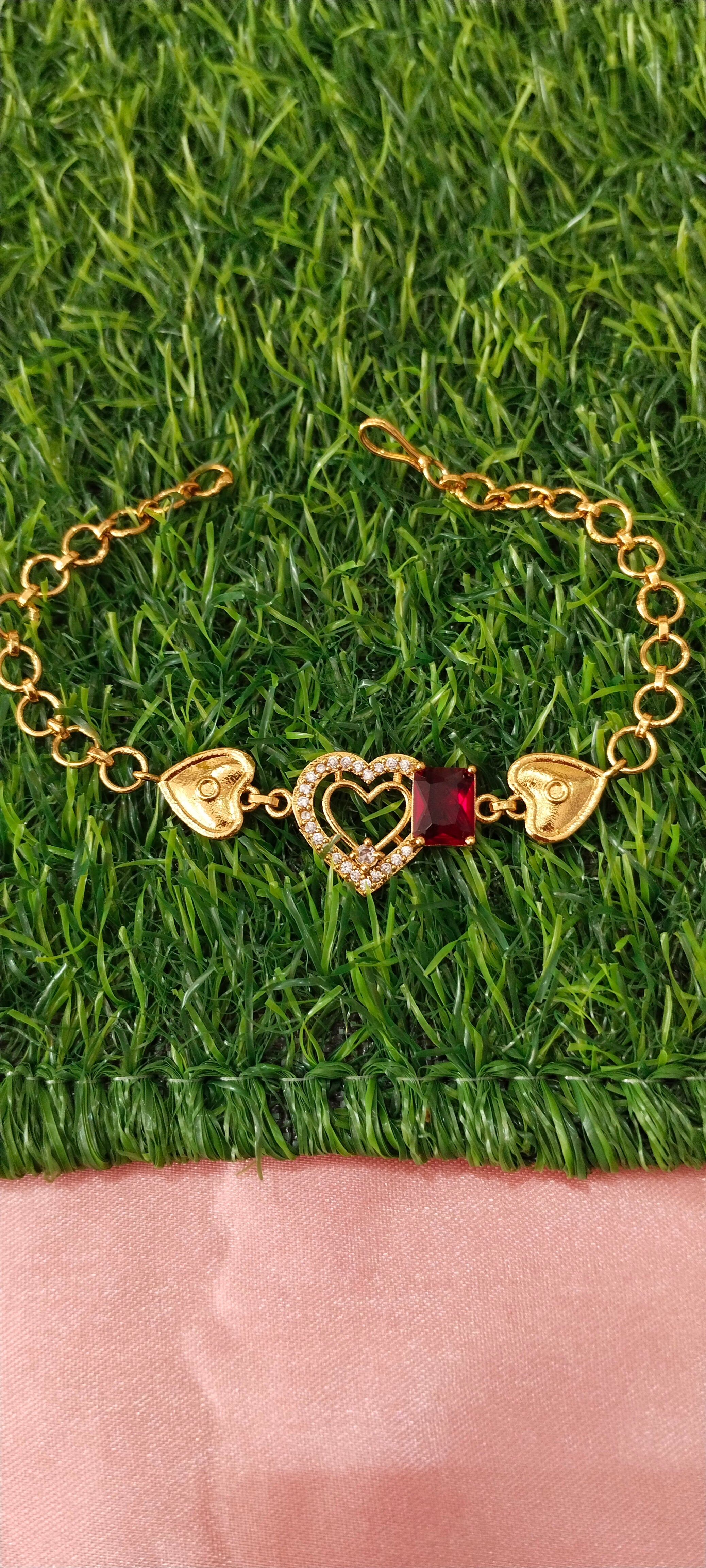 Gold Bracelet with Heart-Shaped Charms with red pendent