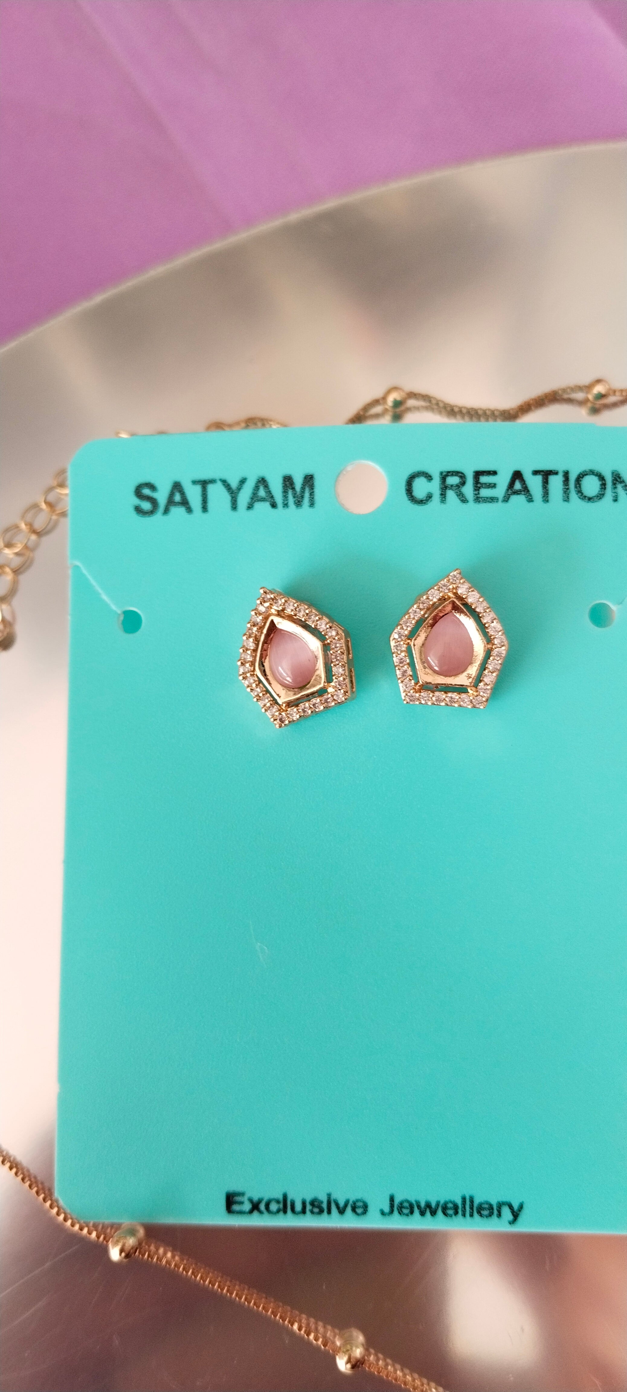 The matching earrings are designed to mirror the pendant’s elegance, offering a beautifully coordinated and balanced look. Finished in a high-quality gold or rose-gold polish, this set radiates exceptional shine and exquisite craftsmanship.