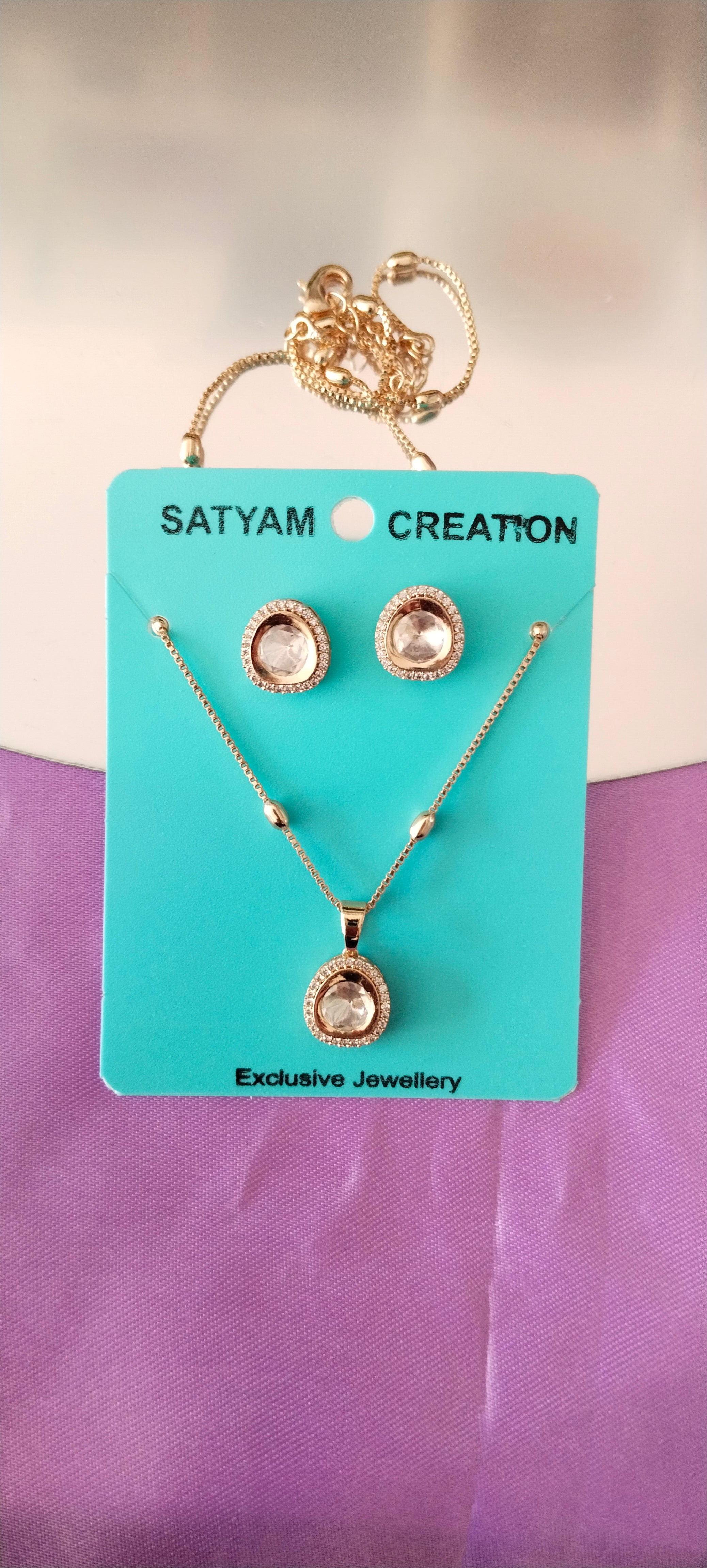 premium Moissanite white Kundan Pendant & Earring Set –Rose Gold Finish