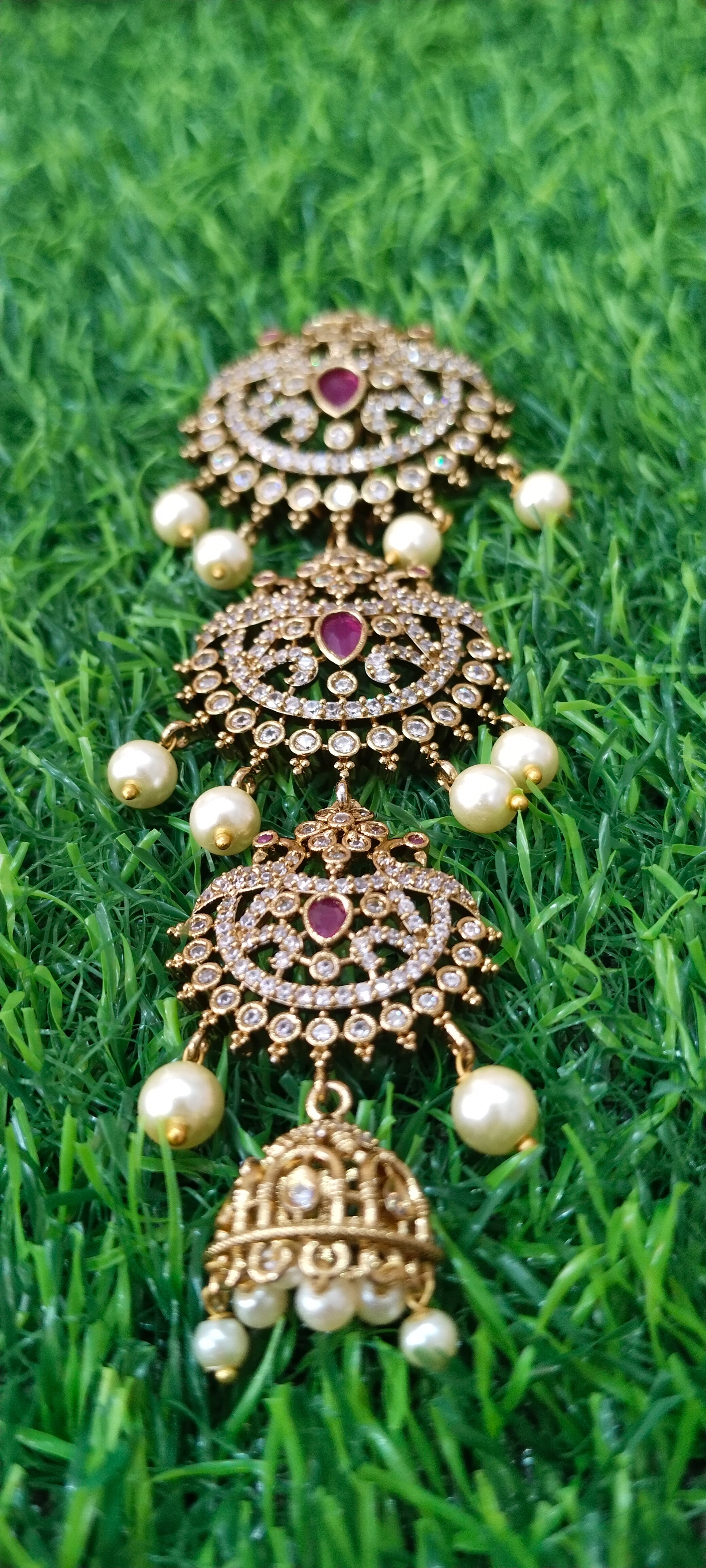 This stunning Victorian Swan Motif CZ Hair Jada is a captivating blend of vintage elegance and contemporary sparkle. Designed with intricate Victorian-style detailing, the jada features a graceful swan motif, symbolizing beauty, purity, and sophistication. The antique finish enhances its royal charm, while the carefully set Cubic Zirconia stones add a radiant shimmer along the braid.