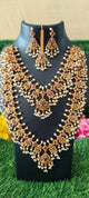 A Long Necklace in traditional South Indian jewelry refers to an elegant haram style piece that gracefully extends below the bust, creating a rich, majestic look.
