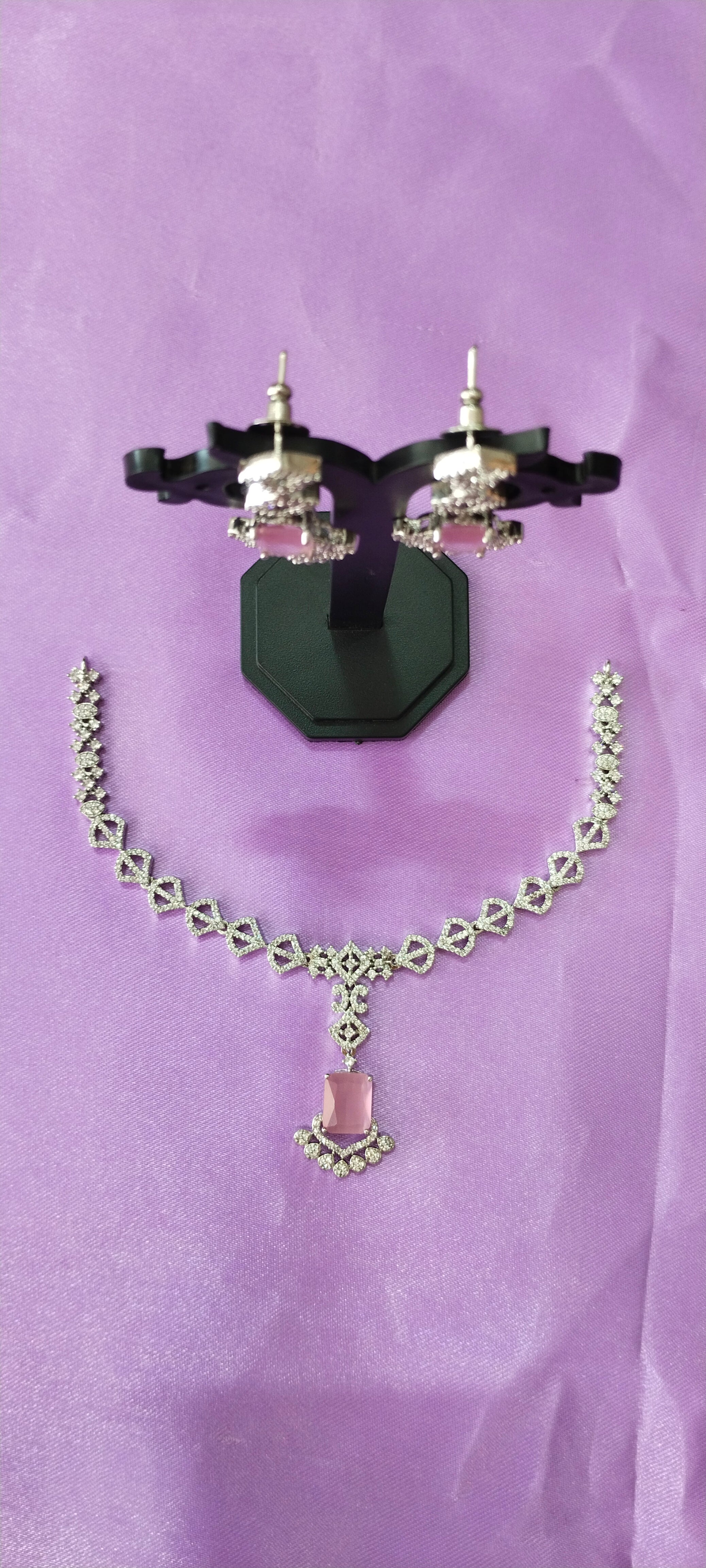 CZ Silver Peach‑Color Pendant with Matching Earrings — Description