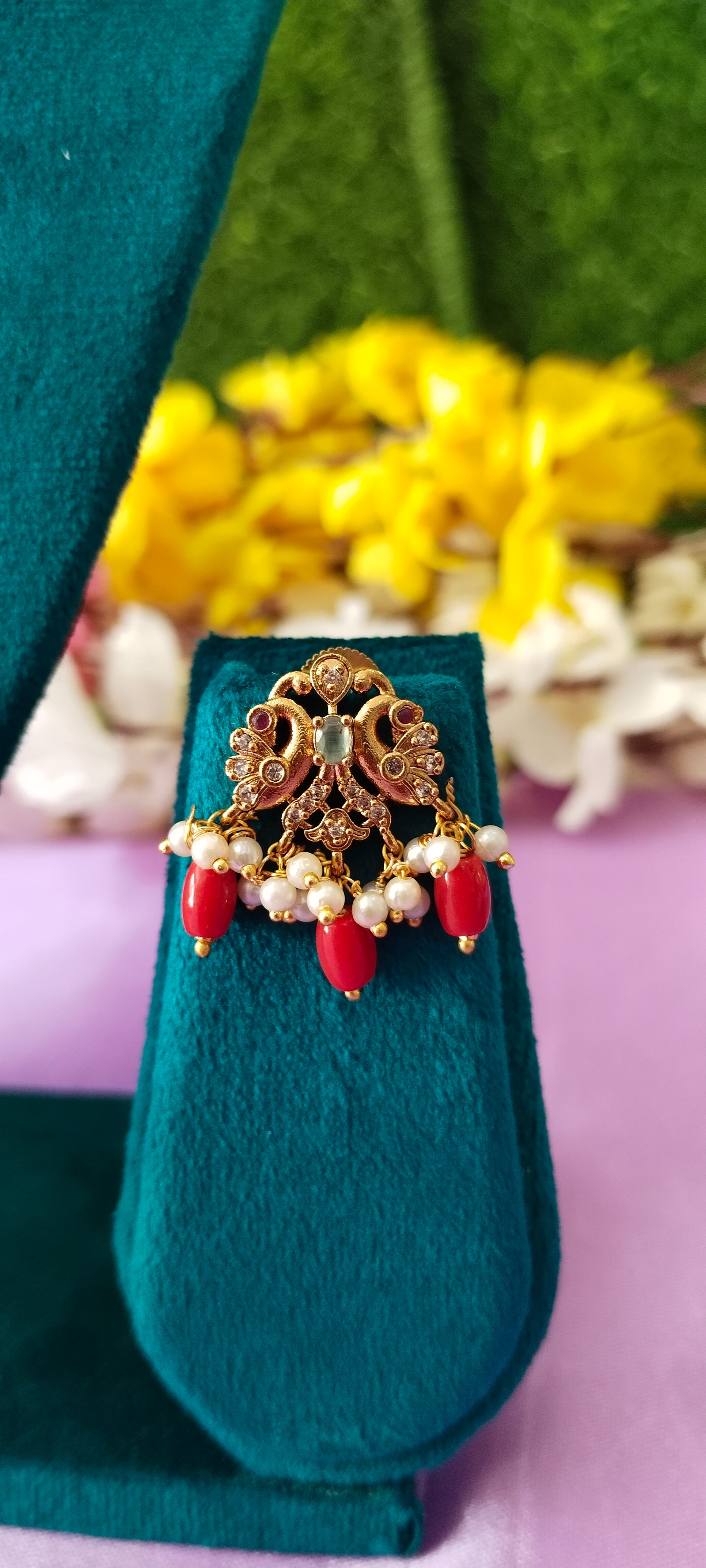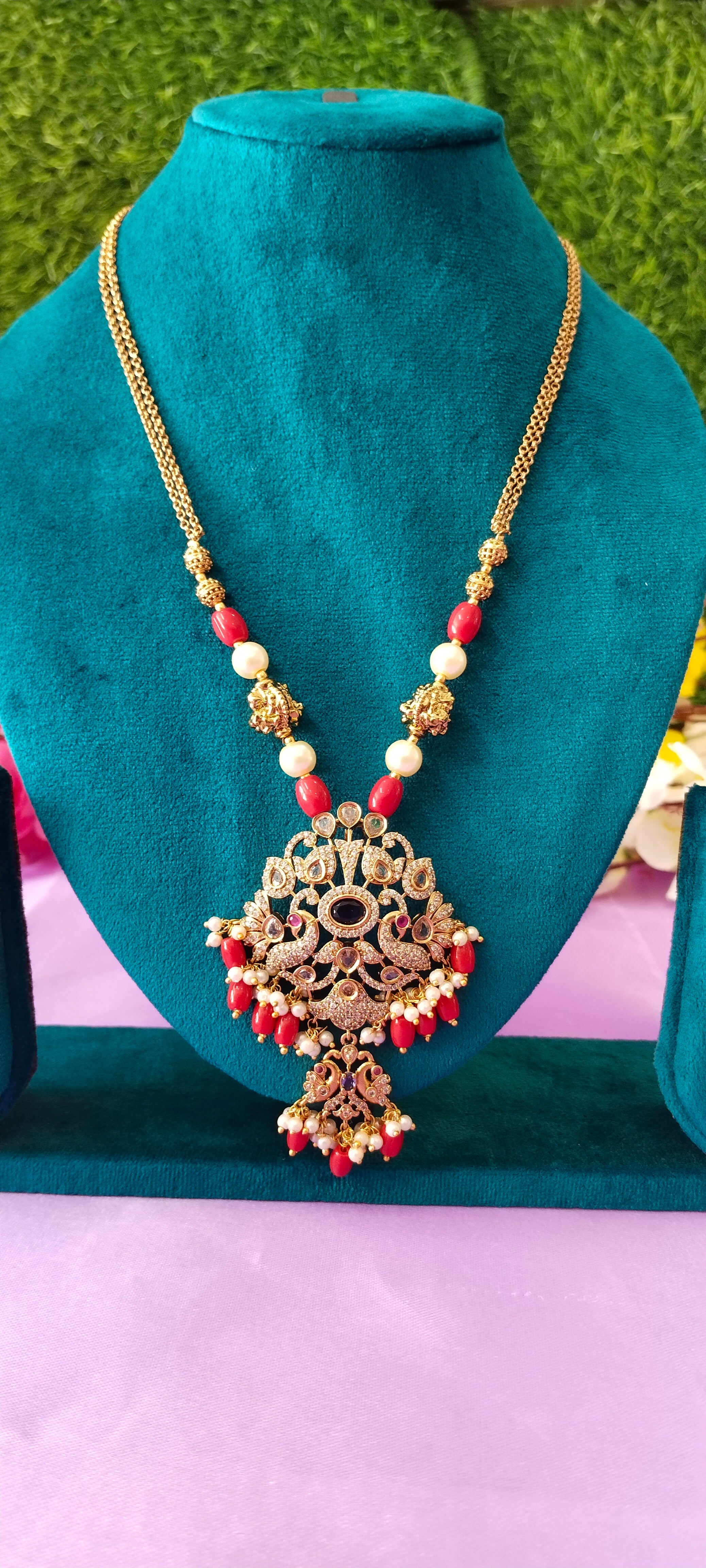 Add timeless elegance to your collection with this Victorian swan locket chain, beautifully adorned with Nakshi balls. The set also includes matching earrings, completing a sophisticated and graceful look. Perfect for both traditional and contemporary outfits.