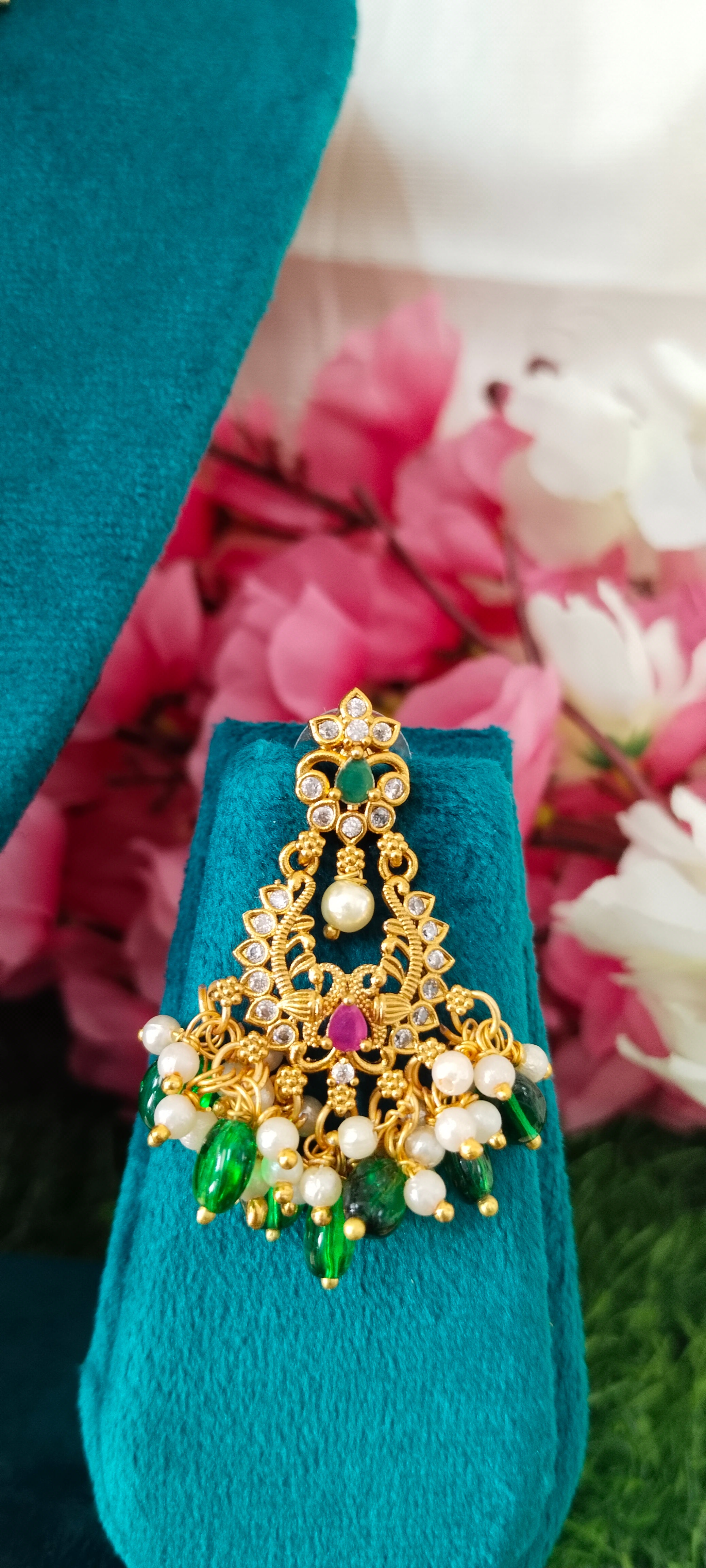 new trendy Kante Model Green Necklace matching earrings. This Party set is the perfect match for you.