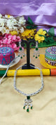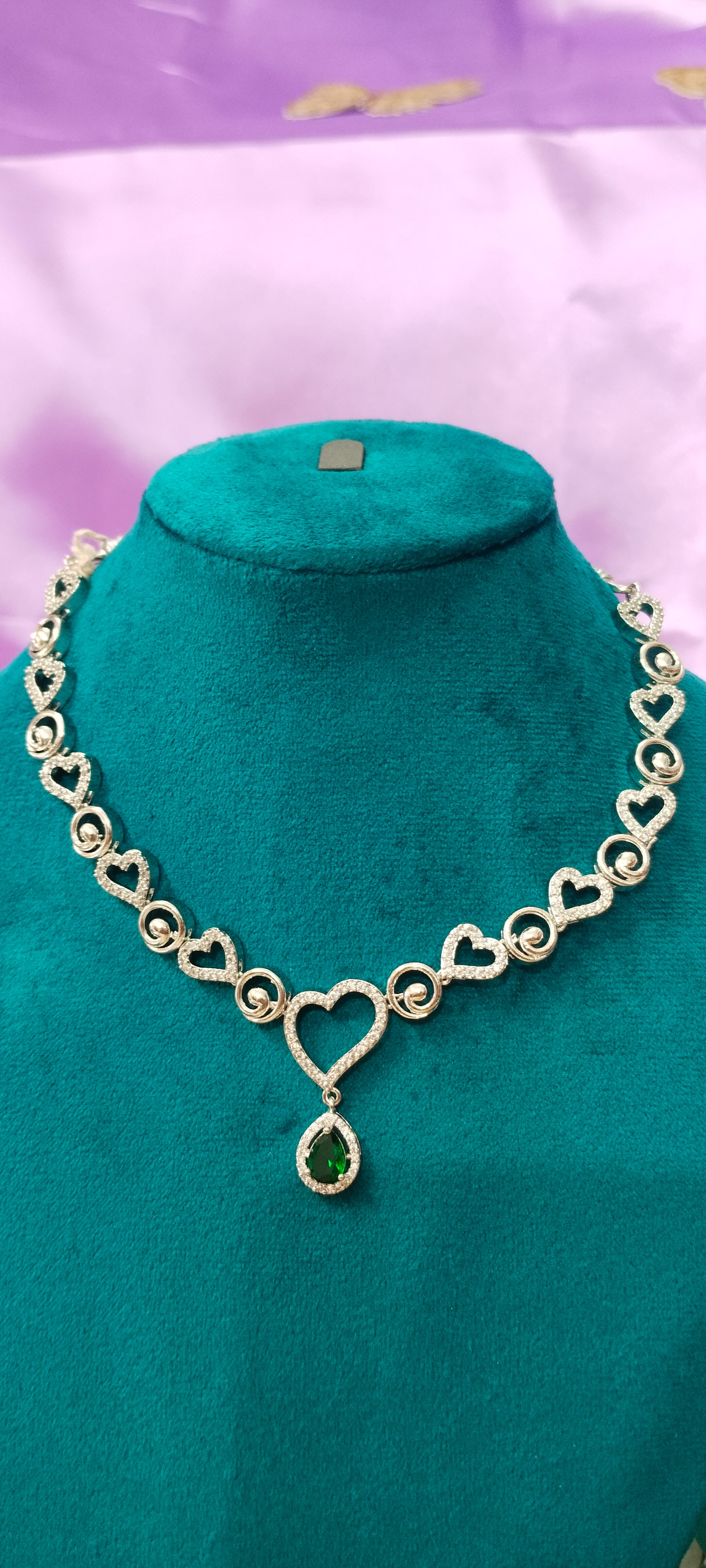 Heart necklace chain with a green pendant. Elegant, lightweight, and perfect for casual or festive wear with earings.                                                                                                                        Heart necklace chain with a green pendant. Elegant, lightweight, and perfect for casual or festive wear.Elevate your look with this exquisite heart necklace chain featuring a rich green pendant. The pendant is carefully crafted and polished to perfection, radiating elegance and charm. Suspended on a fine chain, this necklace balances sophistication and modern design, making it ideal for gifting, special events, or adding a subtle pop of color to your ensemble.