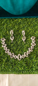 Add a striking touch of elegance and mystique to your ensemble with this Premium American Diamond (A.D) Necklace in a unique eye-inspired design. Featuring sparkling blue and white stones, this statement piece captures attention with its intricate detailing and radiant shimmer, making it perfect for festive occasions, parties, and special events.