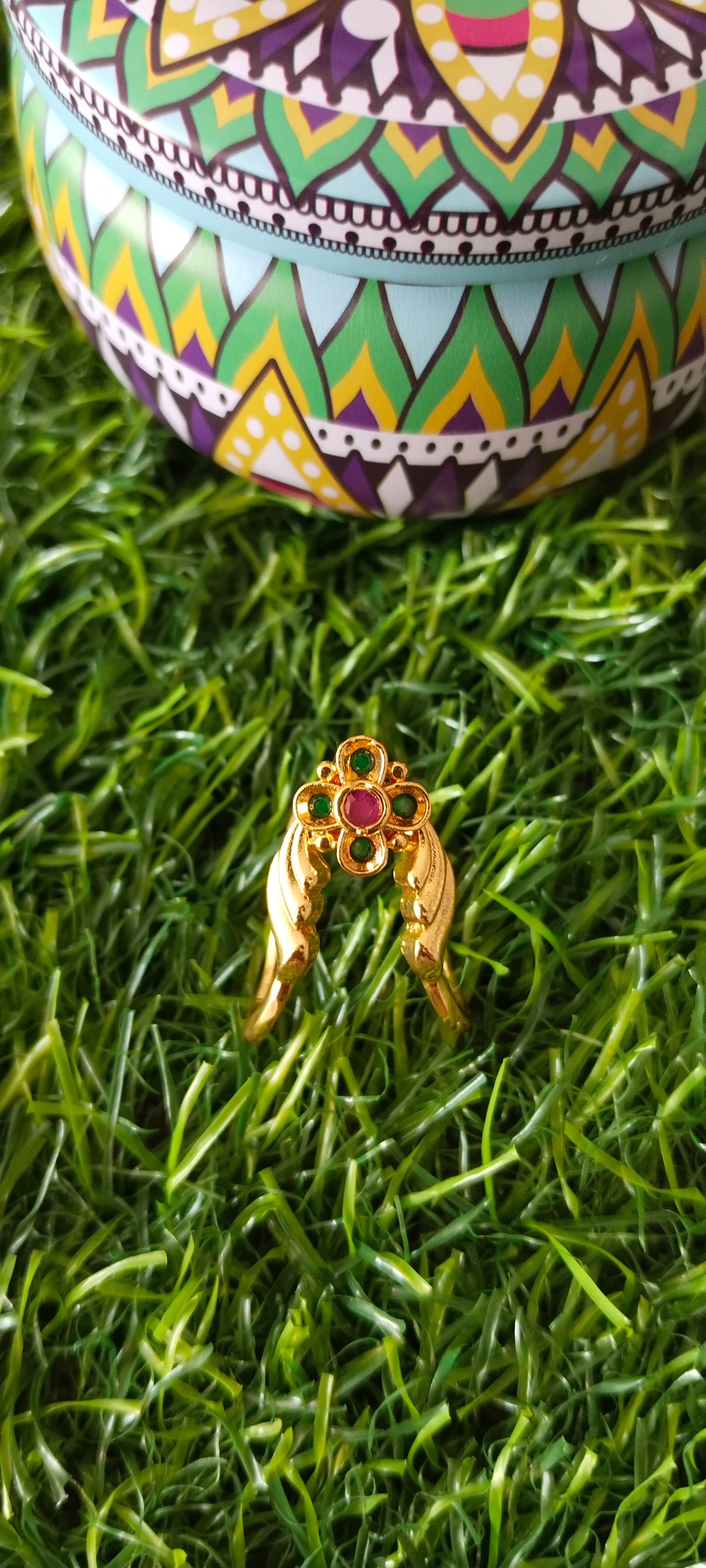 Designed to complement ethnic attire, this ring pairs effortlessly with sarees, silk outfits, and temple jewelry. Its balanced structure and comfortable fit make it suitable for both daily traditional wear and festive occasions.