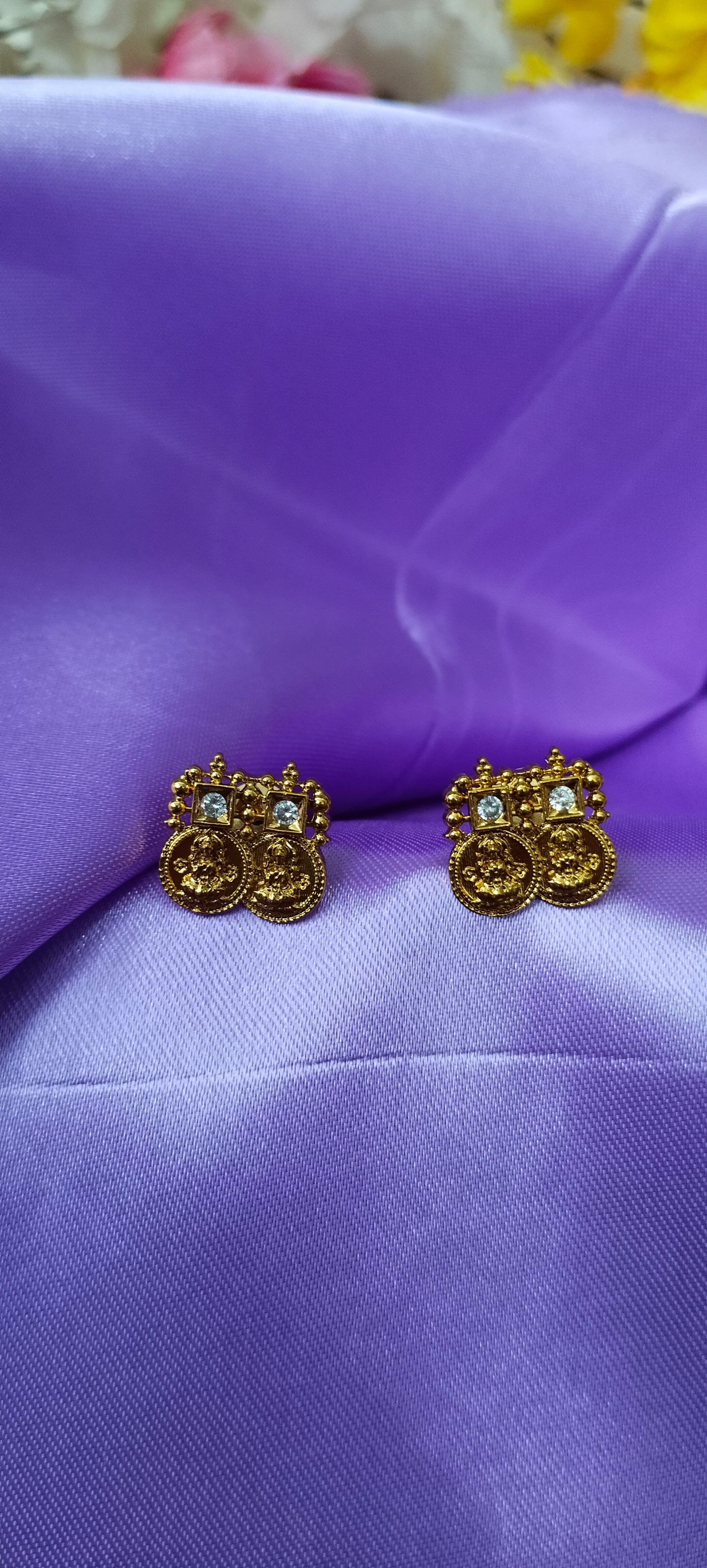 This stunning gold-plated Laxmi Devi Kasula Necklace blends divine elegance with timeless craftsmanship. Each kasu (coin) is intricately embossed with Goddess Laxmi, symbolizing prosperity, abundance, and blessings. The rich gold polish enhances its temple-jewelry charm, making it an exquisite choice for festive occasions, poojas, weddings, and cultural celebrations.